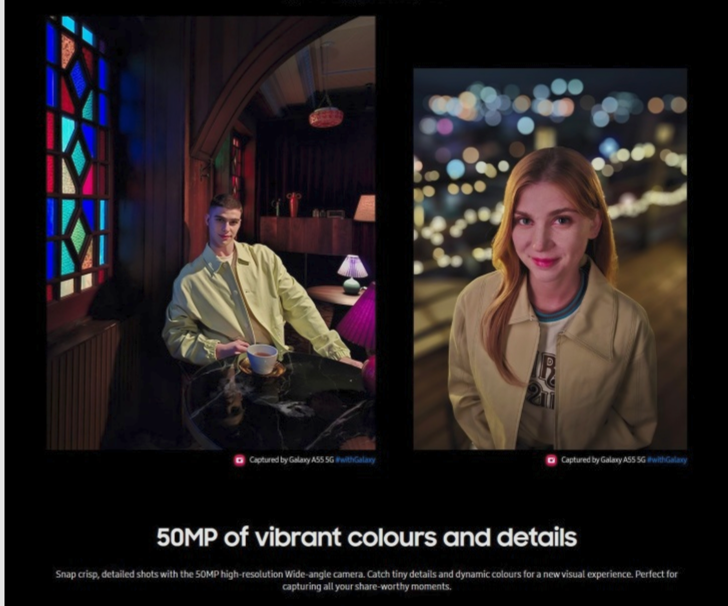 갤럭시 A55 5G는 사용자의 기대를 충족시키는 향상된 카메라 성능을 제공합니다.