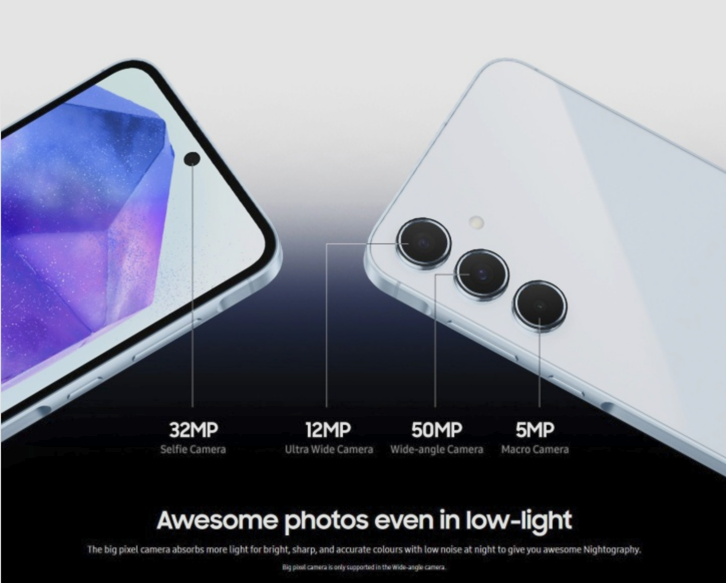 고급 이미지 신호 처리(ISP) 기술: 갤럭시 A55는 고급 ISP 기술을 통해 더욱 향상된 이미지 품질을 제공합니다.
